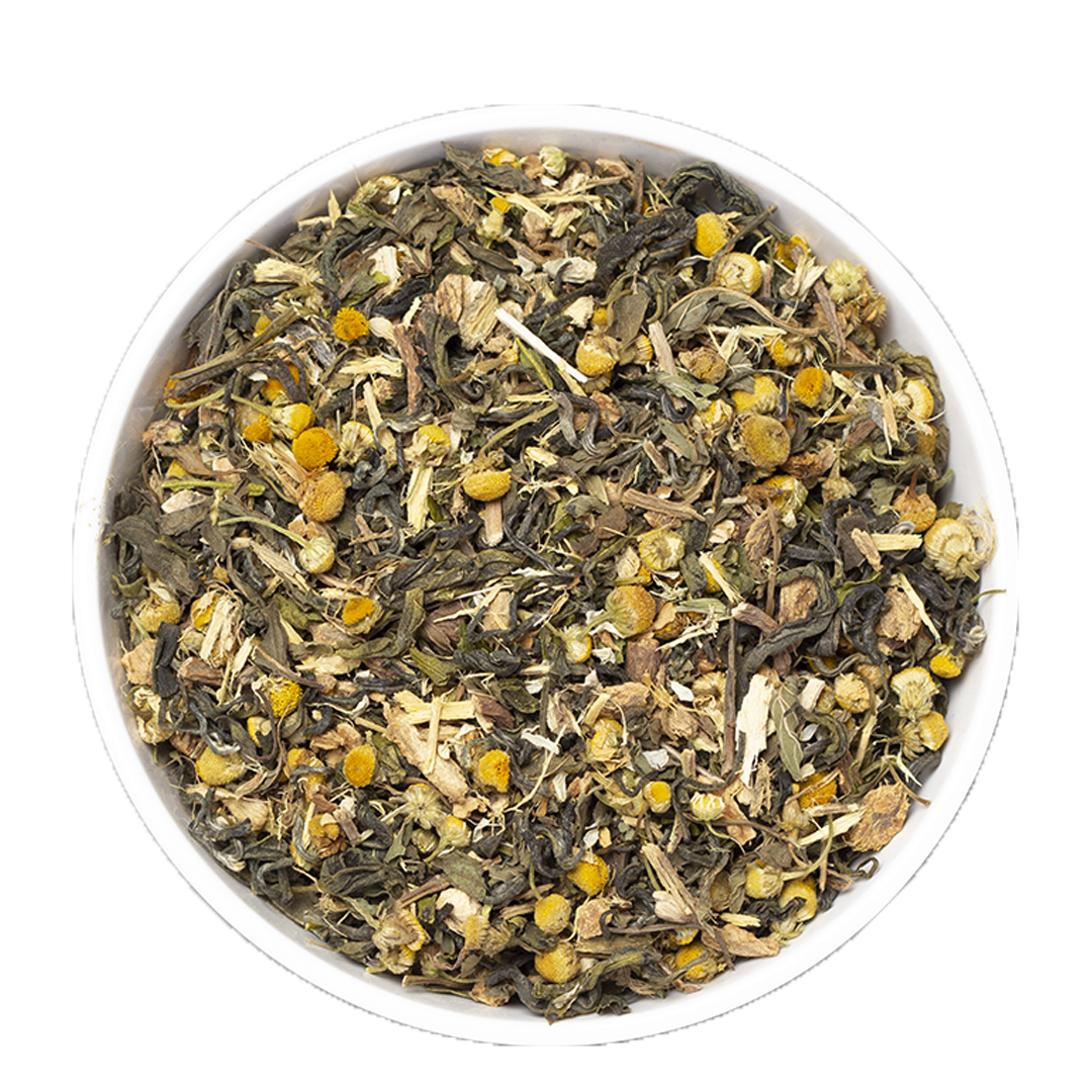 Blended with green tea, peppermint, ginger, and chamomile, this soothing infusion brings together time-honored herbs traditionally appreciated for digestive wellness.