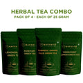 Package Contains - Turmeric Ginger Tulsi Green Tea, Ginger Mint Lemon Green Tea, Rosemary Green Tea, Lemongrass Green Tea