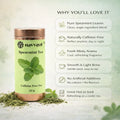 "Soothe your senses with our Spearmint, made with 100% Pure Spearmint leaves. This refreshing brew offers a calming and gentle experience, perfect for moments of discomfort. Enjoy the cooling flavor and aroma of spearmint, known to provide a sense of relaxation and tranquility. Our Spearmint Tea is a natural, caffeine-free choice for those seeking a comforting cup. Try it hot or iced, sweetened or unsweetened - a delightful way to unwind and refresh. Ideal for a post-meal cup or an anytime pick-me-up."