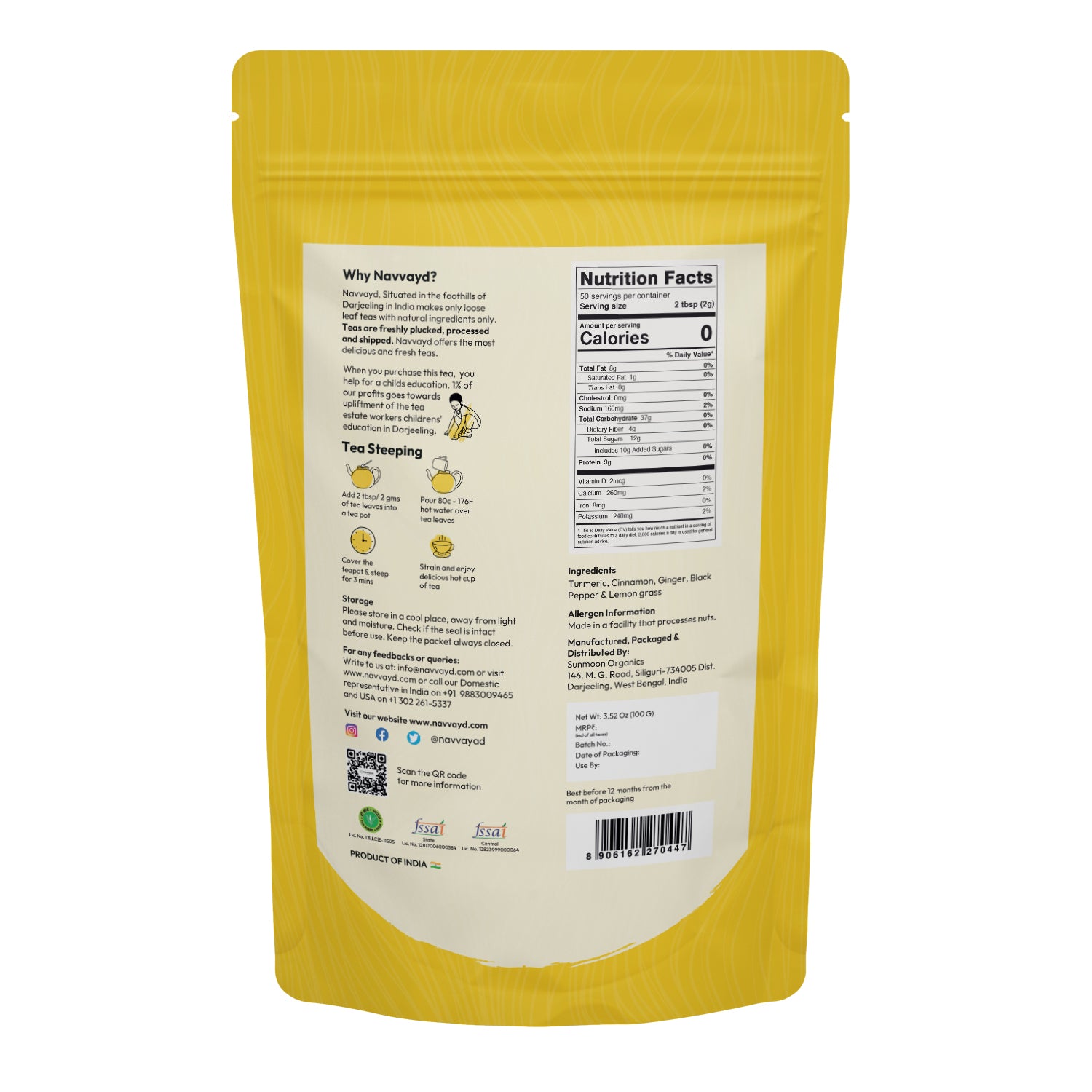 Ingredients - Turmeric, Cinnamon, Ginger, Black Pepper & Lemon Grass.